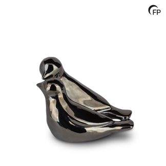FPU 087 Keramische kunst urn keepsake Whistling Birds Zilverkleur